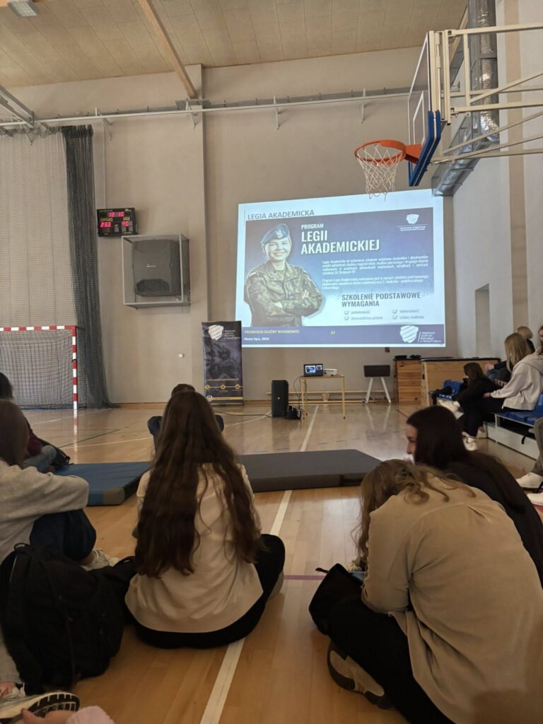 Podczas prelekcji przedstawiono uczniom różne formy służby w Wojsku Polskim — od dobrowolnej zasadniczej służby wojskowej, poprzez terytorialną, do zawodowej.