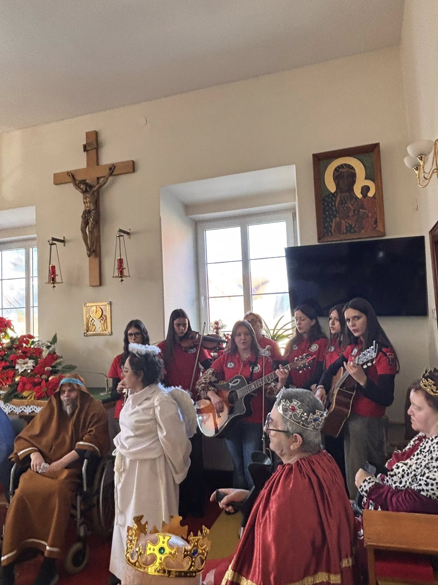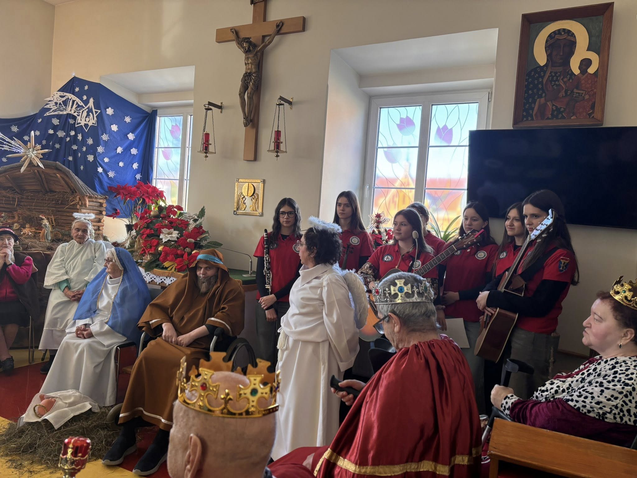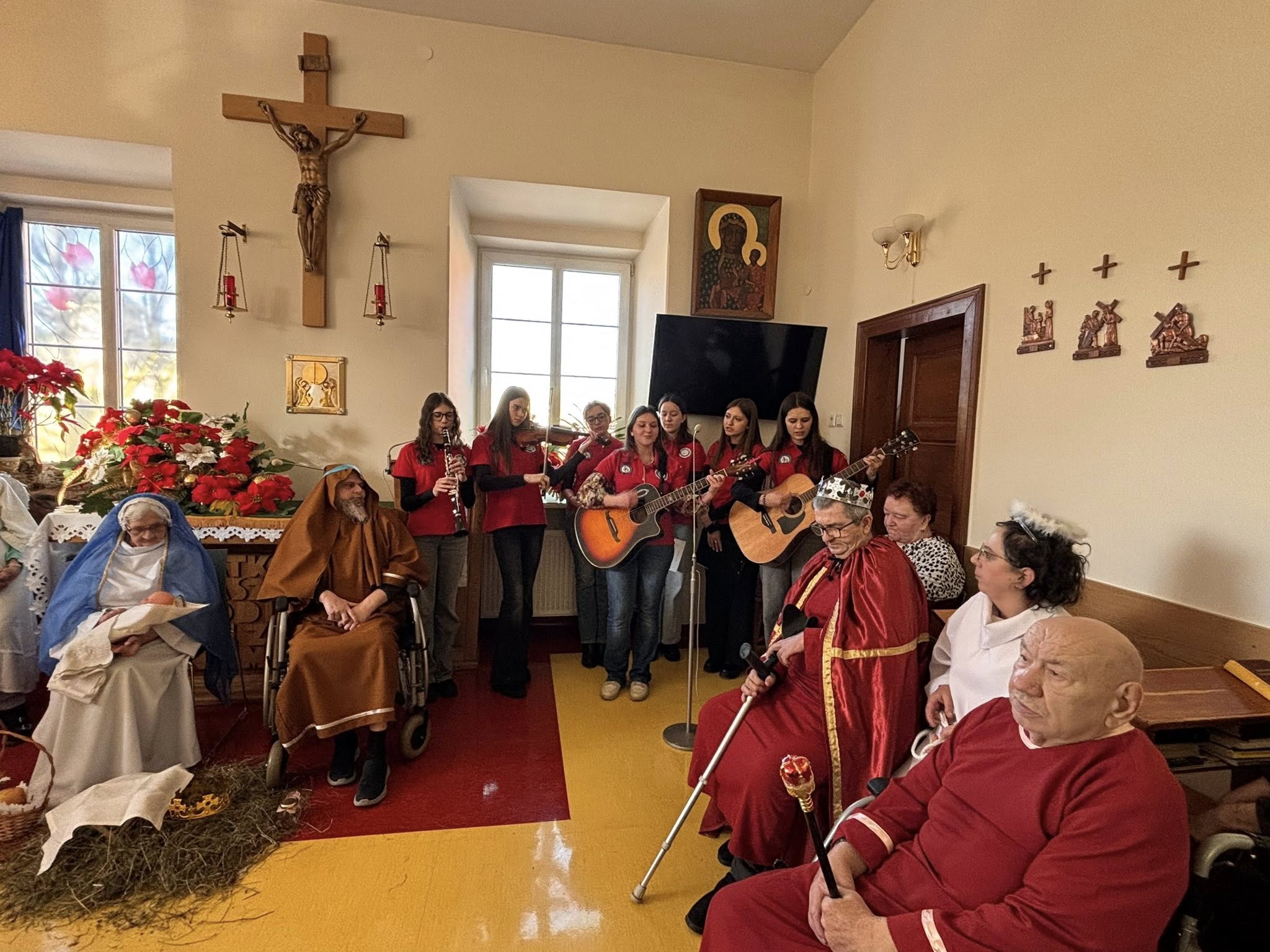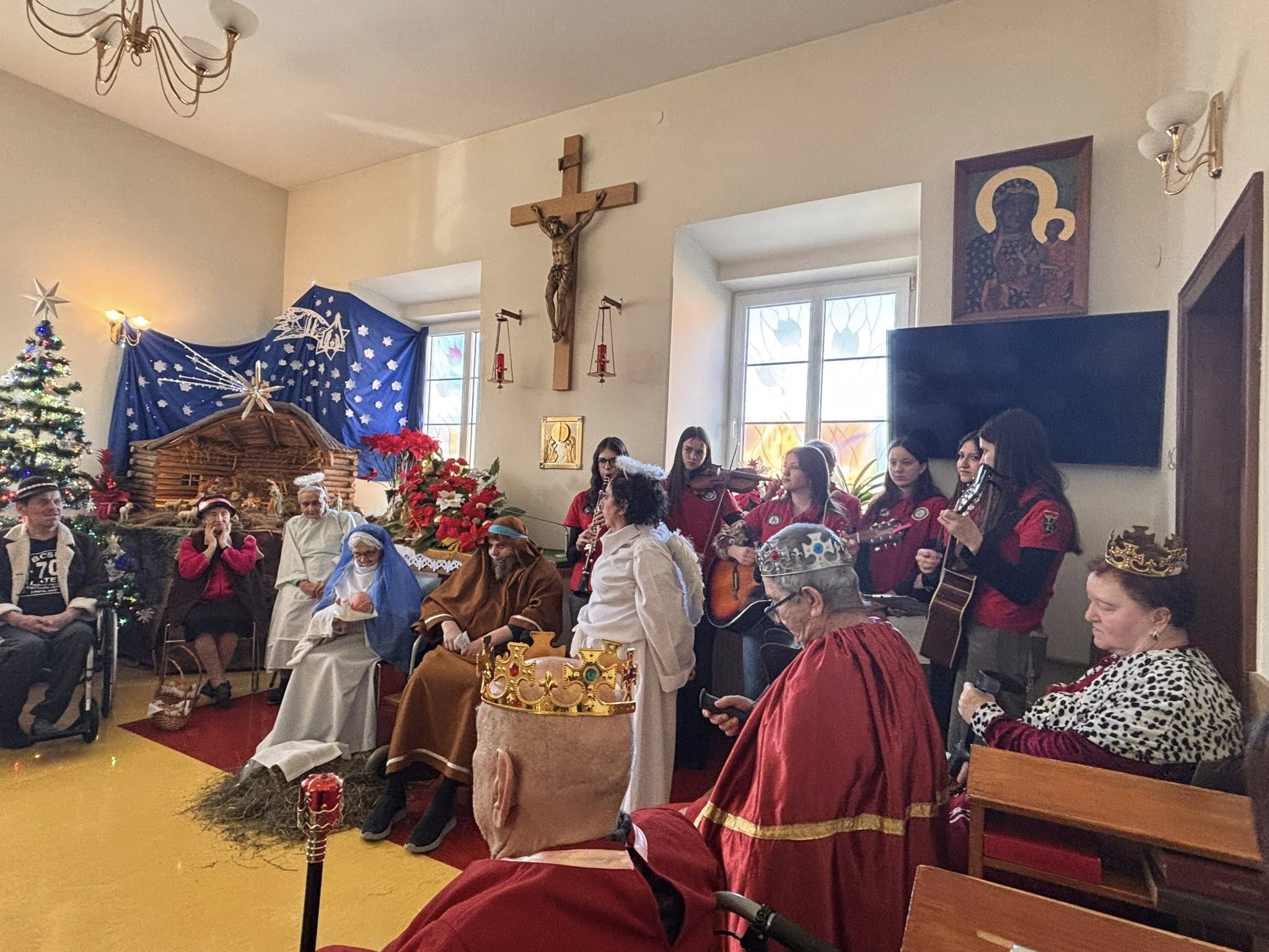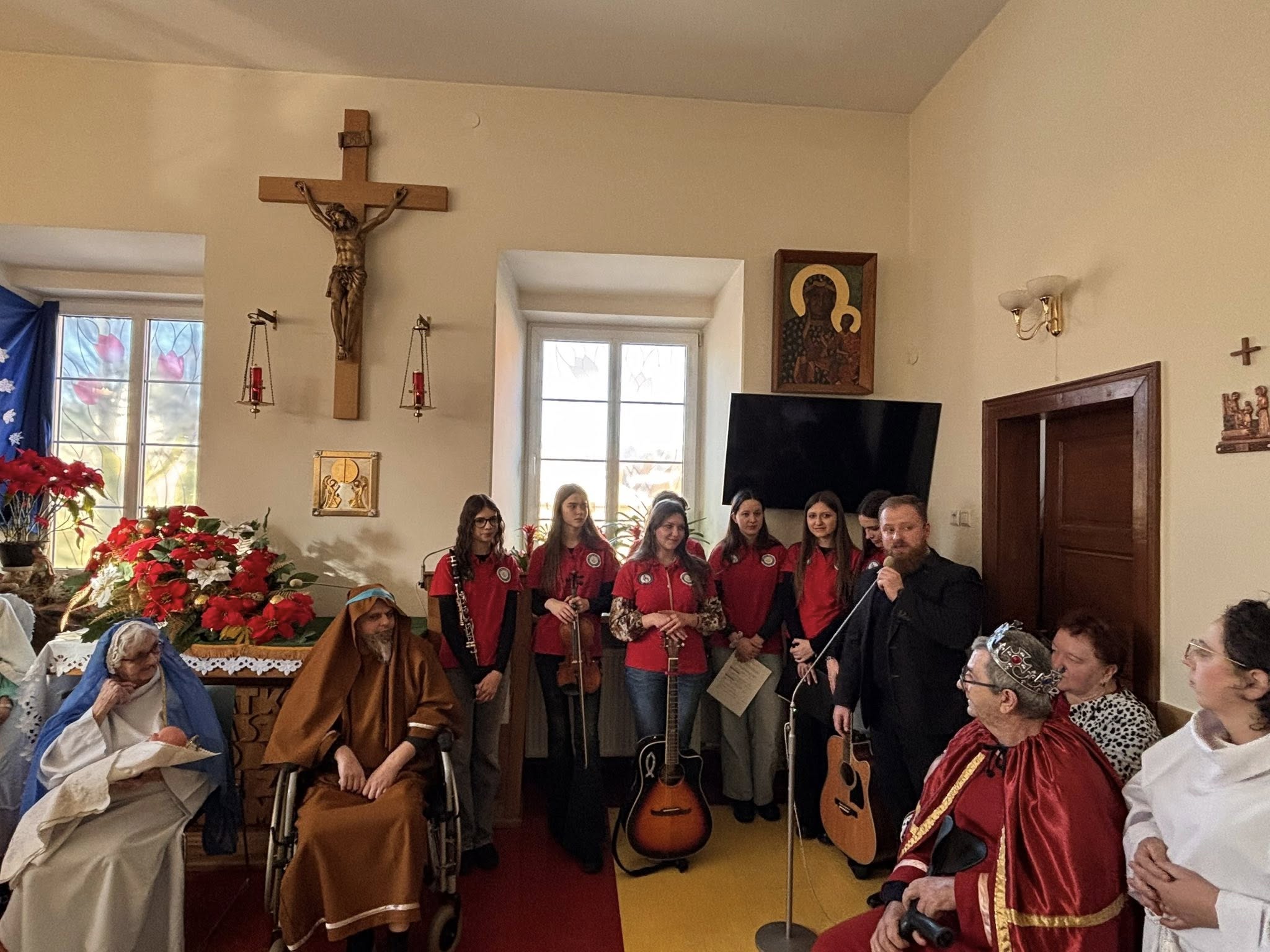 Młodzież włączyła się w organizację Jasełek przygotowanych przez pensjonariuszy Zakładu Opiekuńczo-Leczniczego, wspierając to wydarzenie oprawą muzyczną.