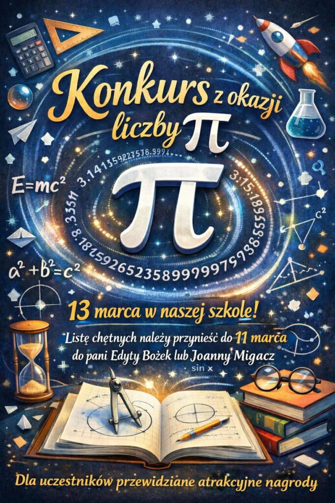 13 marca br. w naszej szkole odbędzie się trzecia edycja konkursu polegającego na zapisaniu z pamięci jak największej ilości cyfr rozwinięcia dziesiętnego liczby π.