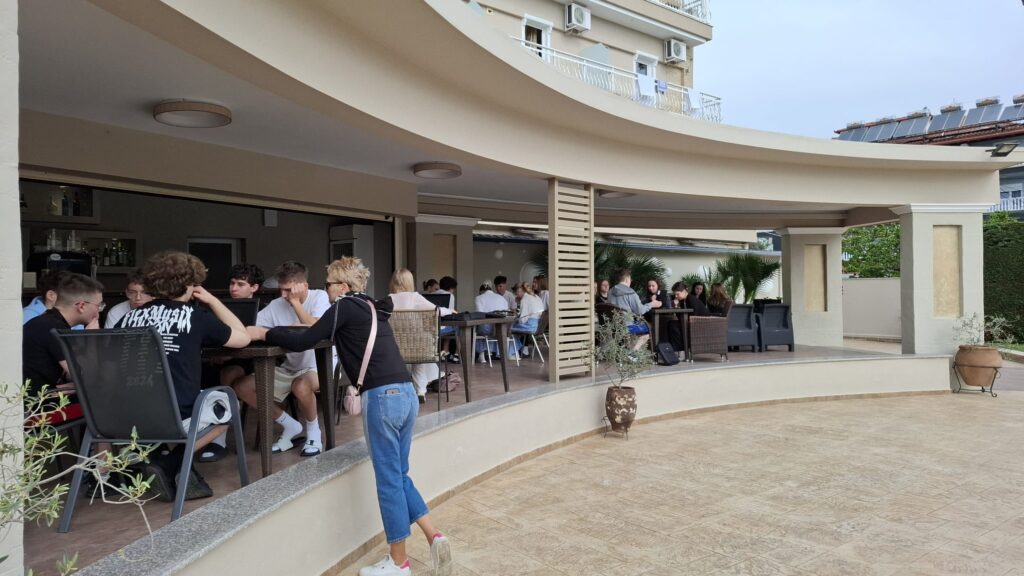 Kolejne dni naszego pobytu w greckim Olimpic Beach przebiegają pracowicie. Rozpoczęliśmy pracę w grupach nad wykonaniem tematycznych prezentacji. Jedni opracowywali mity związane z rejonem Pierii, drudzy, zwłaszcza będący pierwszy raz, układali słowniki grecko-angielsko-polskie zawierające najczęściej używane zwroty i wyrażenia.