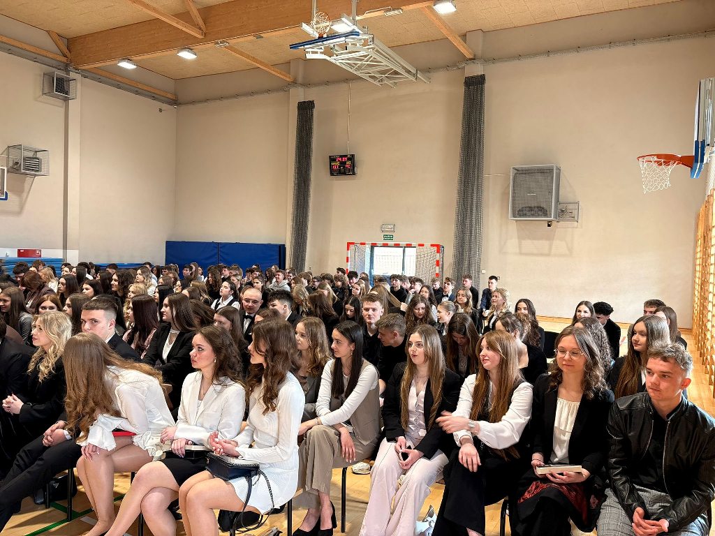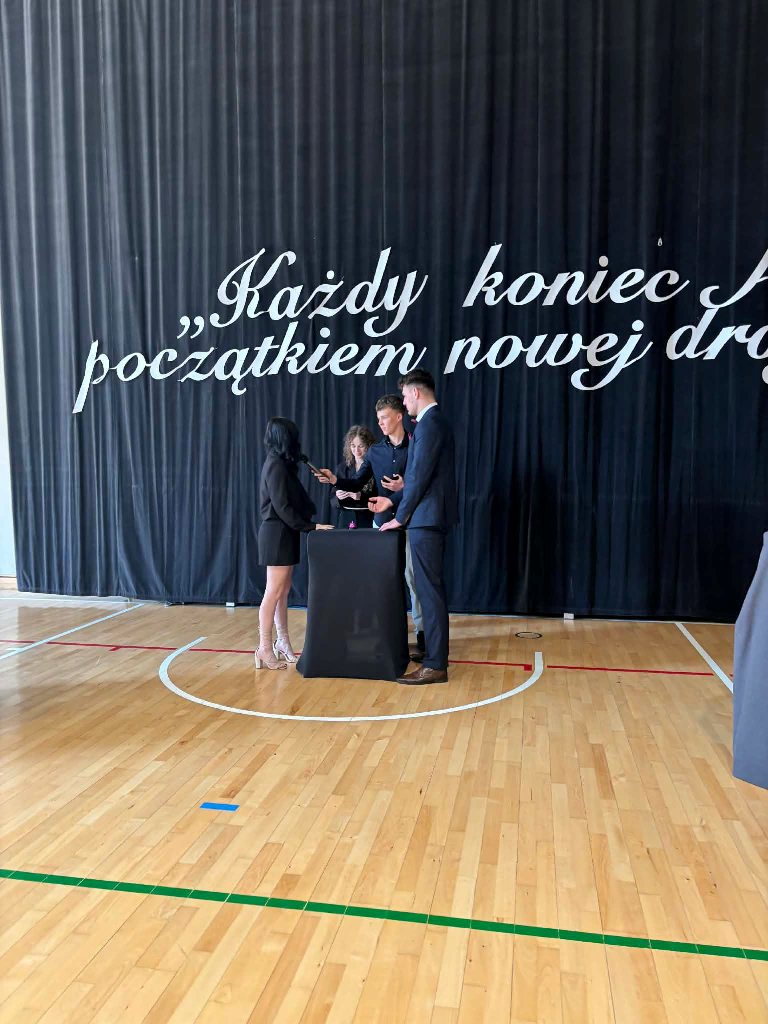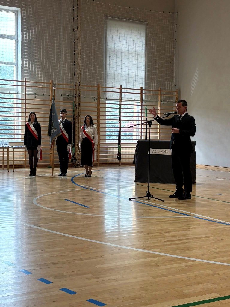Dyrektor szkoły, pan Tomasz Walicki, podziękował maturzystom za cztery lata wspólnej pracy i zaangażowania. Życzył im odwagi w realizowaniu marzeń, dokonywania mądrych wyborów oraz zachowania w pamięci tego, co w życiu najważniejsze — zdrowia, relacji z innymi oraz wierności własnym wartościom.